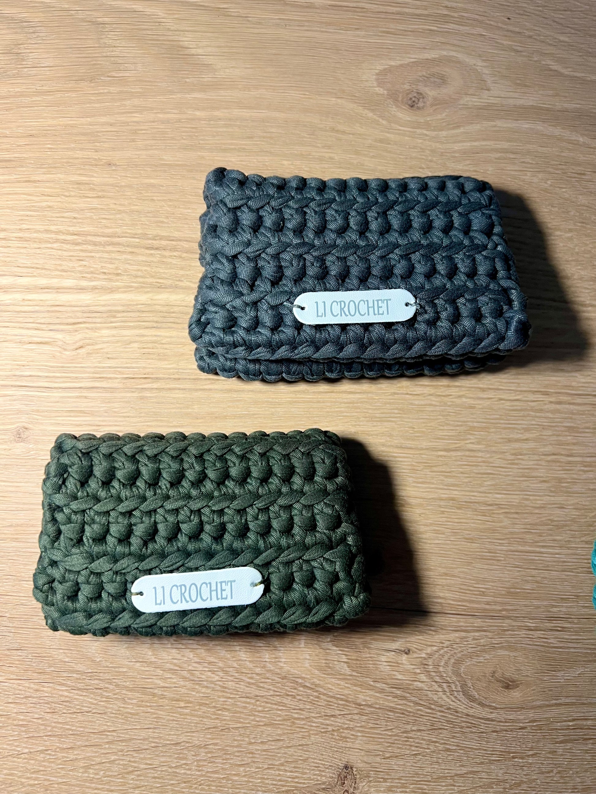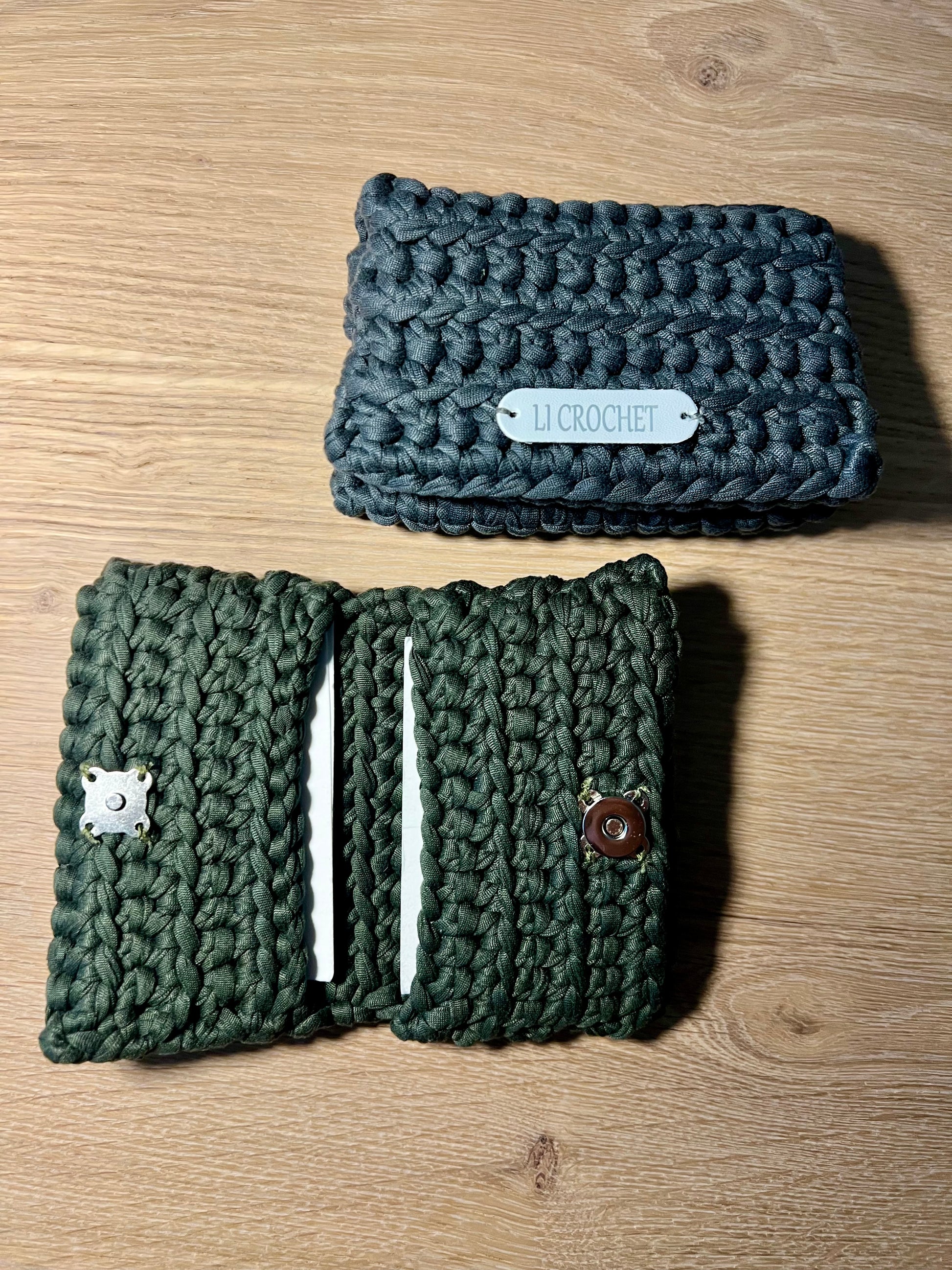 Porta tessere con chiusura fatte ad uncinetto
